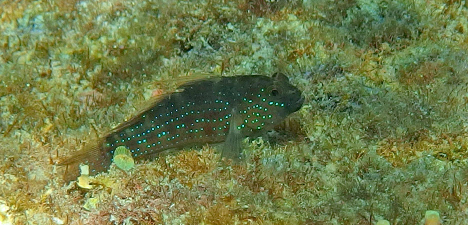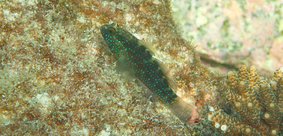 体側に青い小斑点が並ぶ